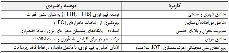•    مناسب‌ترین گزینه برای زیرساخت دائمی پهن‌باند ملی